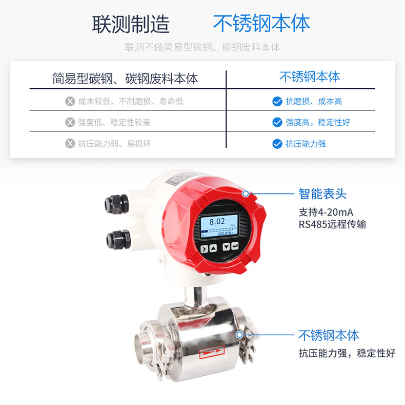 聯(lián)測LDG-SINW衛(wèi)生型電磁流量計廣泛應用于食品,醫(yī)藥等衛(wèi)生型行業(yè)及溫泉、飲料等領(lǐng)域的流量計量。多用于現(xiàn)場工況或者介質(zhì)要求衛(wèi)生類型。