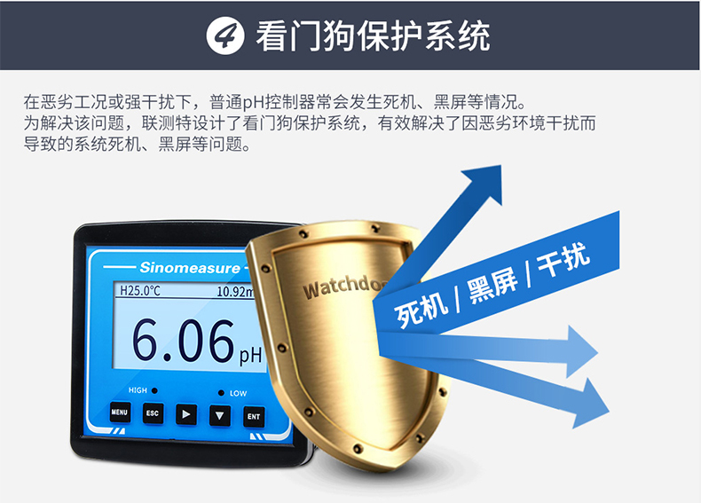SIN-pH3.0儀表實現(xiàn)4-20mA信號輸出、繼電器報警輸出以及RS485通訊,搭配PH上位機軟件,可實現(xiàn)對多臺PH控制器聯(lián)機進行系統(tǒng)性監(jiān)控的功能。