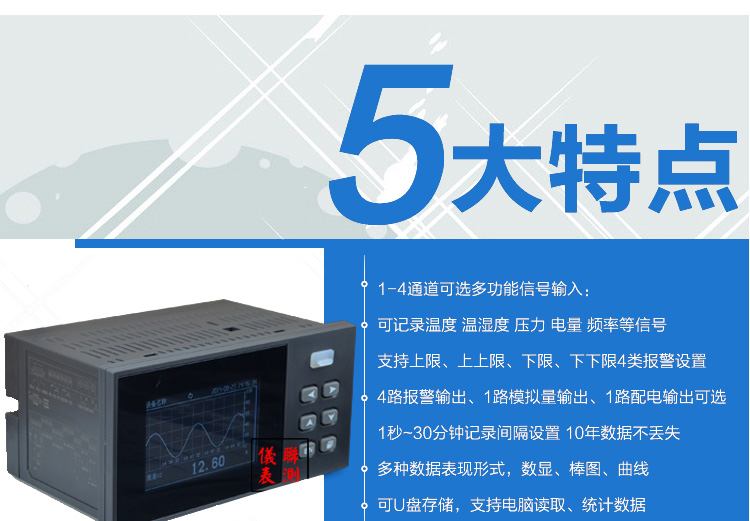 SIN-R200D系列無紙記錄儀可自由組態輸入標準電流、標準電壓、熱電偶、熱電阻、頻率等信號,可實現為傳感器配電和繼電器報警輸出,并且可通過U盤或通訊方式與上位機進行數據交換。無紙記錄儀 本身具有實時數據顯示畫面、曲線顯示畫面以及棒圖數據顯示畫面,同時,可以與微型打印機相連 接,實現現場打印功能,與聲光報警器連接,實現現場聲光報警功能。