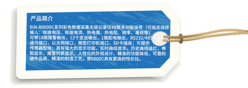 SIN-R6000C系列彩色無紙記錄儀48路萬能輸入(可組態(tài)選擇輸入:標(biāo)準電壓、標(biāo)準電流、熱電偶、熱電阻、頻率、毫伏等)??蓭?8路報警輸出,12個變送輸出,RS232/485通訊接口,以太網(wǎng)接口,微型打印機接口和USB接口,SD卡插座;可提供傳感器配電;具有強大的顯示功能,實時曲線顯示,歷史曲線追憶,棒圖顯示,報警列表顯示。